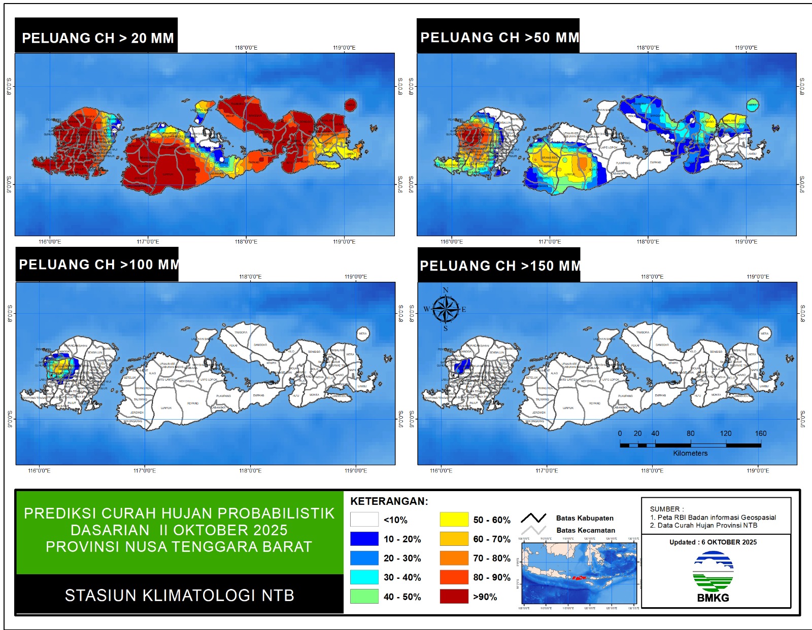 Peta Monitoring Hari Tanpa Hujan Berturut-turut Dasarian Badan Meteorologi, Klimatologi, dan Geofisika (BMKG) Provinsi NTB