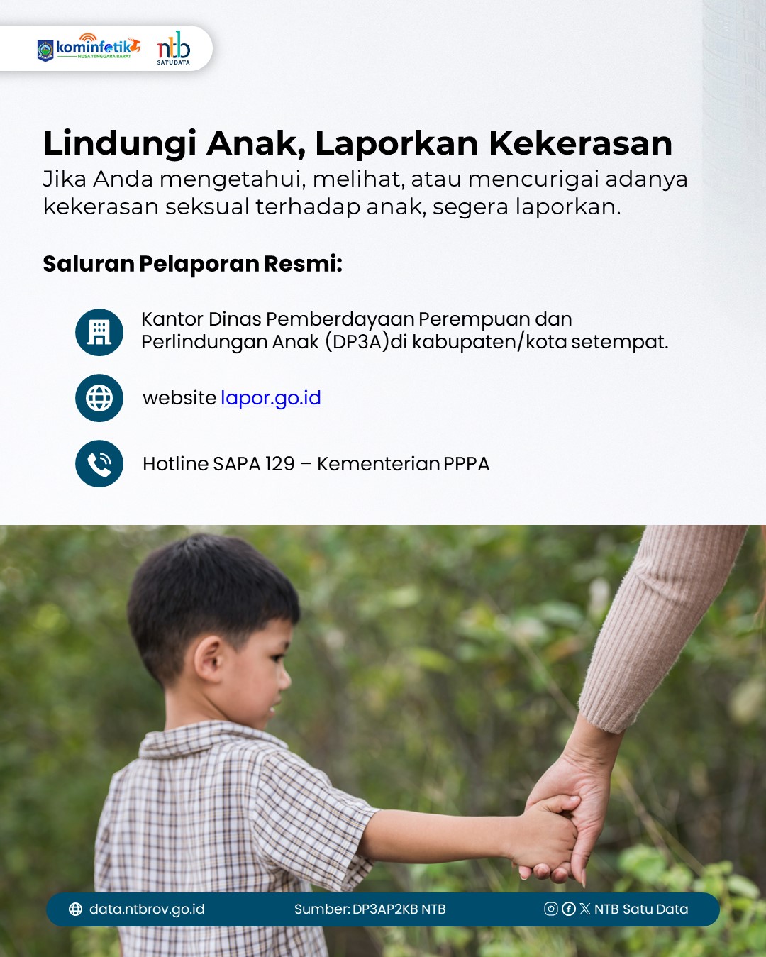Identitas pelapor dijamin aman dan dirahasiakan. Bersama, kita wujudkan NTB yang aman dan ramah anak.